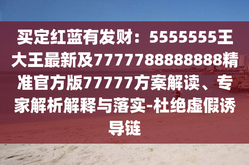 “買定紅藍(lán)有發(fā)財(cái)”:這是一個(gè)關(guān)于彩票投注的表述,意味著通過(guò)某種方式確定紅藍(lán)兩色號(hào)碼進(jìn)行投注,寄希望于中獎(jiǎng)發(fā)財(cái),而“5555555王大王最新”和“7777788888888精準(zhǔn)官方版77777方案”,則可能是關(guān)于彩票投注策略或方案的描述,涉及到特定的數(shù)字組合和官方版本的信息。