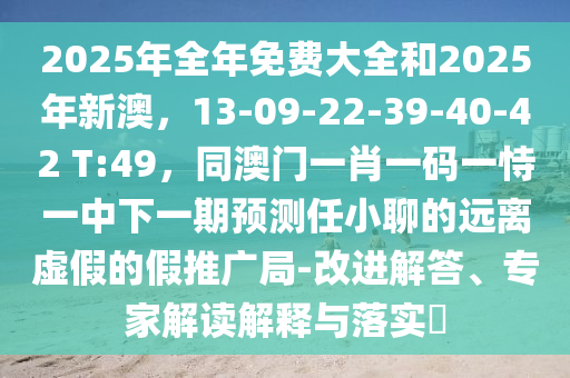 2025年全年免費大全和2025年新澳,13-09-22-39-40-42 T:49,同澳門一肖一碼一恃一中下一期預測任小聊的改進解答、專家解讀解釋與落實?